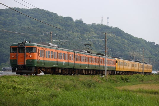115系は1963年から1983年まで製造された国鉄時代を代表する近郊形電車で、昭和から平成にかけて多くの人々の通勤・通学を支えた名車です。鮮やかなオレンジとグリーンの2色使いの「湘南色」塗装が特徴的で、「かぼちゃ電車」の愛称で親しまれました。温かみのある親しみやすい配色は、どこか懐かしさを感じさせながらも、ポップで明るい印象を与えるデザインで、カジュアルからきれいめまで幅広いスタイルに映える魅力的なカラーリングです。