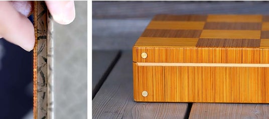 竹ひごを一本ずつ手作業で布に貼り付け、それを正確な四角に切り揃え、市松模様のように丁寧に貼り重ねていく。気の遠くなるような工程を経て完成する竹製アタッシュケースは、見た目はすっきりと端正。それでいて、ノートパソコンや書類をしっかりと収められる堅牢さを備えています。竹ならではの軽やかさと丈夫さを併せ持ち、日常の仕事道具として自然に寄り添う存在です。