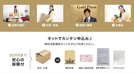 バッグやお財布などまとめて持ってのご来店は何かと大変かと思います。金相場高騰により来店数も増えている中、待ち時間が発生される場合も。その際に便利なのが宅配買取です。ゴールドプラザの宅配買取は査定料・送料・キャンセル料の全てが無料でご利用頂けます。ダンボールや緩衝材も注文可能です。査定結果はお電話もしくはメールにてお知らせ。今回のキャンペーンを少しでもお得にご利用頂けるようゴールドプラザの宅配買取でブランド品をまとめてご売却してみませんか。