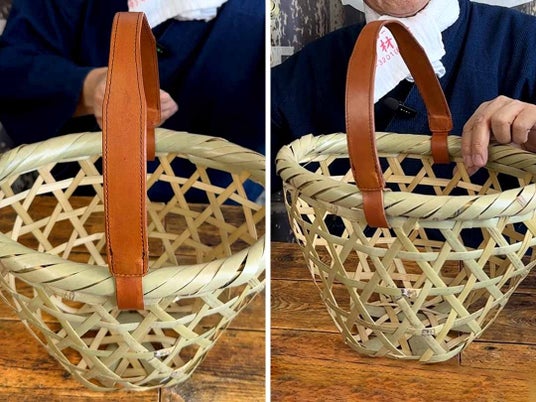 【竹虎YouTube特別販売!】各1点限り!真竹三角革持ち手買い物かご