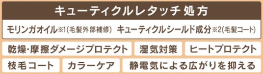 外部補修×コート。キューティクルレタッチ処方で特に傷んだ髪もツルツルしっとりまとまる。
