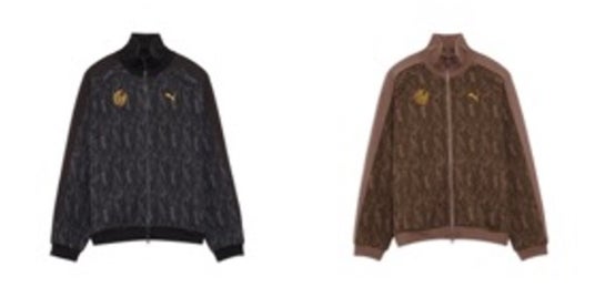 アパレルには、各エリアを象徴するモンスターをデザインしたフーディーや、モンスターの肌感を表現し、胸元に調査隊エンブレムをあしらったAOPトラックジャケットが登場。さらに、プーマを象徴するトラックジャケット“T7”を着用した今回限定描き下ろしのアイルーをデザインしたTシャツや、プーマキャットの上に乗ったアイルーをあしらったフーディーなど、特別仕様のアイテムもラインアップします。