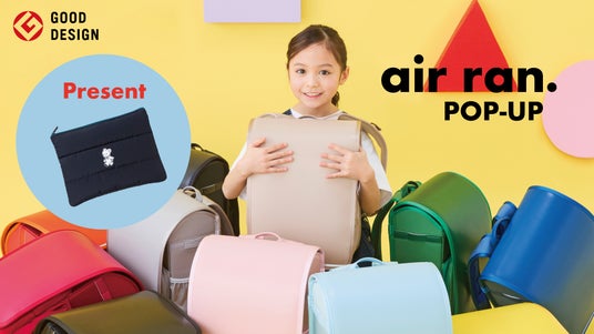 全国各地でair ran. 全12色のサンプルをご覧いただけるPOP-UPを開催!期間限定の特設会場で、実際に手に取ってお試しください。対象期間中、air ran. (品番:270920・270921・270922・270923・270924)をご購入いただいた方には、タブレットの収納など通学に便利なポーチをプレゼントいたします。