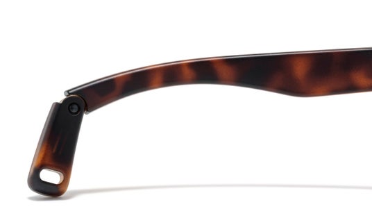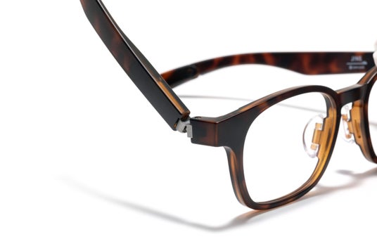 「全方位可動ヒンジ(TM)」を搭載。上下左右にテンプルが可動し、力を加えても壊れにくい※1