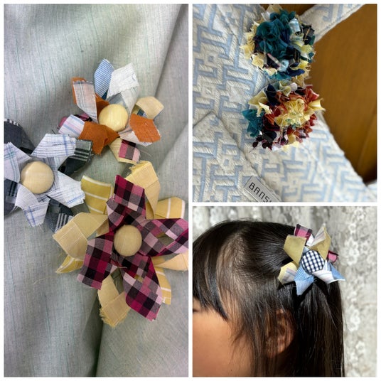 播州織を使ったフラワーアクセアリーや缶バッジを作ります。