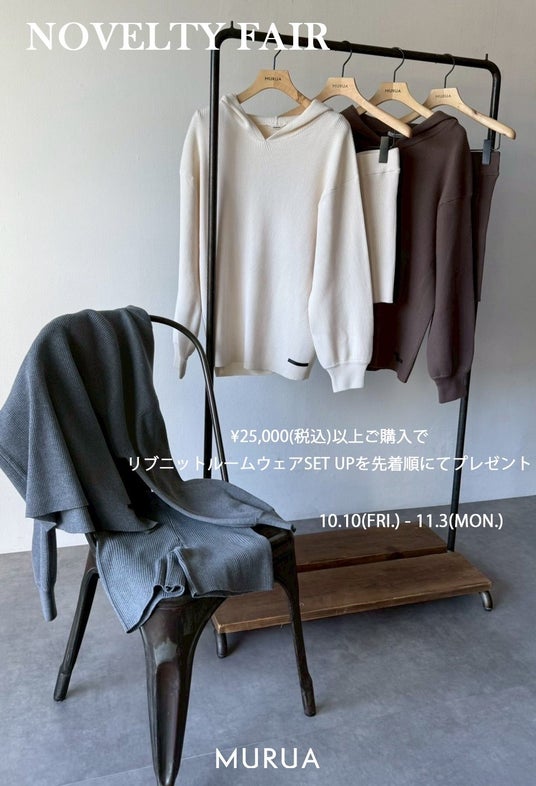 MURUA:MURUA商品を25,000円(税込)以上お買い上げで「ルームウェア」プレゼント(数量限定)