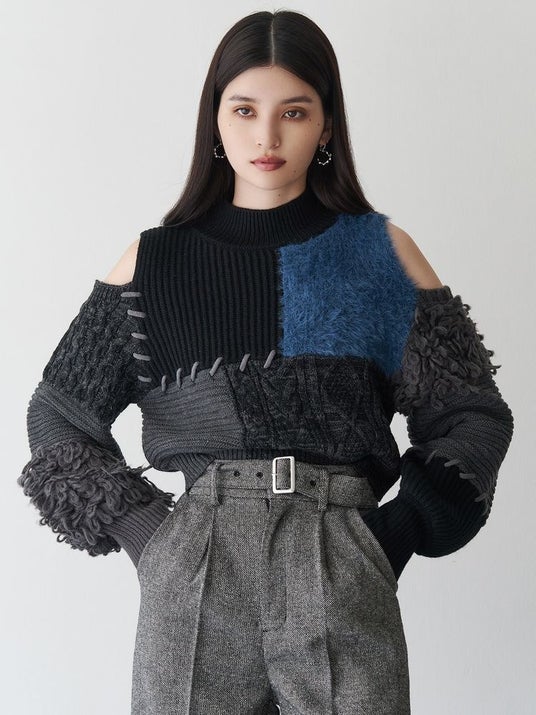 マテリアルMIXショルダーオープンニット_MURUA