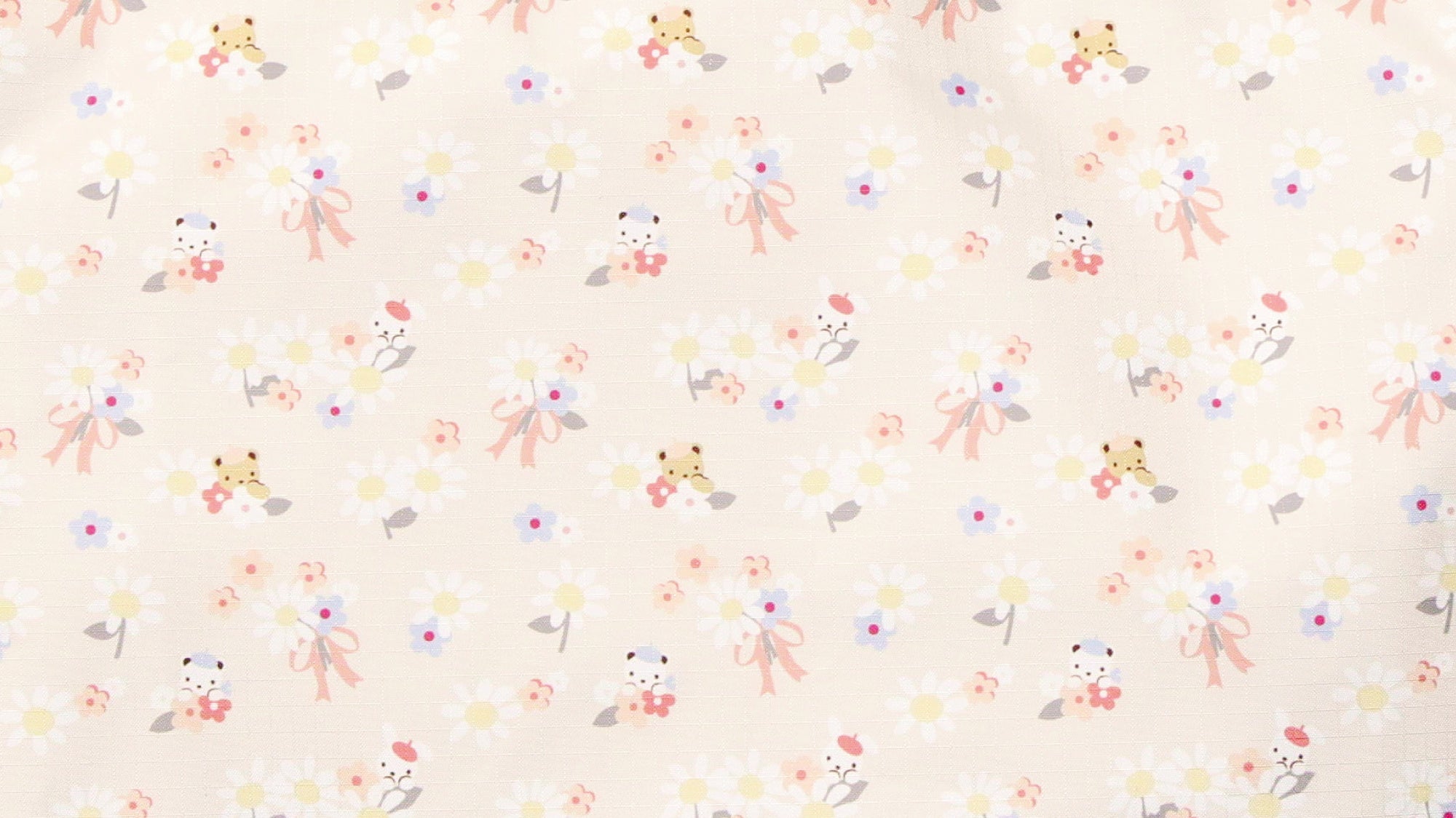 春らしいお花とクマとウサギのオリジナル総柄プリントが今回のコラボレーション限定で誕生。淡いベージュのベース生地にパステルカラーで表現されたアートは、かわいらしさの中にも上品さが漂う仕上がり。リバーシブルトートバッグとショルダーバッグに使用しています。