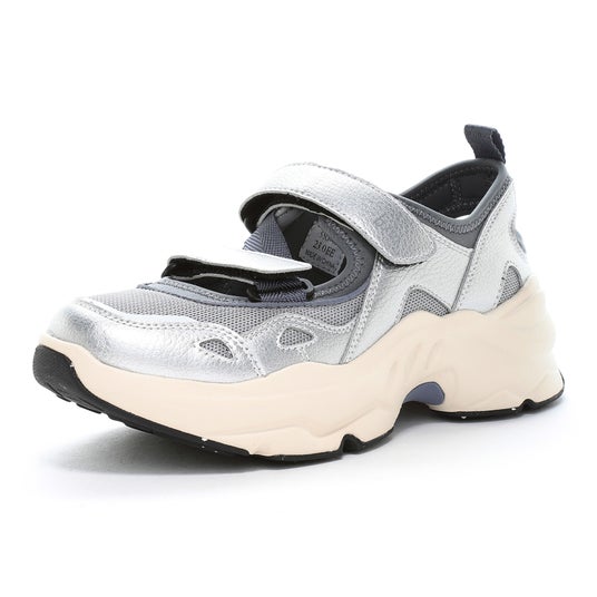 人気モデル「B/M04オルタ」にトレンドのシルバーカラーが登場。サンダルとスニーカーが融合したハイブリッドなスニーカーで、ソックスとの相性もいいデザインなのでシーズン問わず履けます。面ファスナーのストラップで脱ぎ履き簡単。タウンユースにもおすすめです。