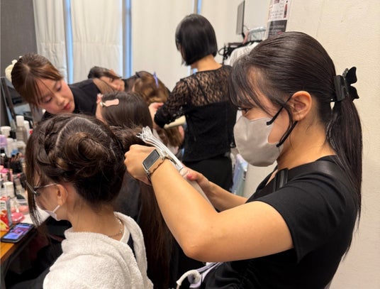 ヘアメイクチームのメンバーは、日常的にはサロンワークを通じてお客様と向き合い、臨時のイベント時にはオーナーや仲間の理解・協力を得て現場に参加しています。オーディションを経てチームに選ばれたメンバーには、高い技術向上や対応力が求められ、サロン外での経験は個人のスキルアップに直結、さらに同僚への刺激や採用活動での魅力発信にもつがっています。