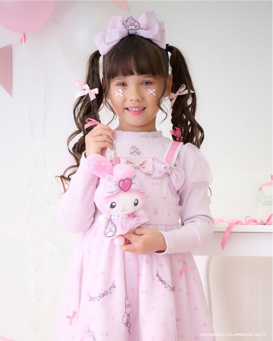 オリジナルで描き起こしたデザインの「マイメロディ」、「クロミ」をそのままぬいぐるみにしたチャーム。ワンピースセットと同じワンピースを着せているので夢のリンクコーデが叶います(ハート)