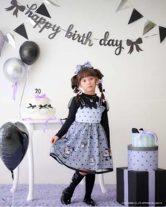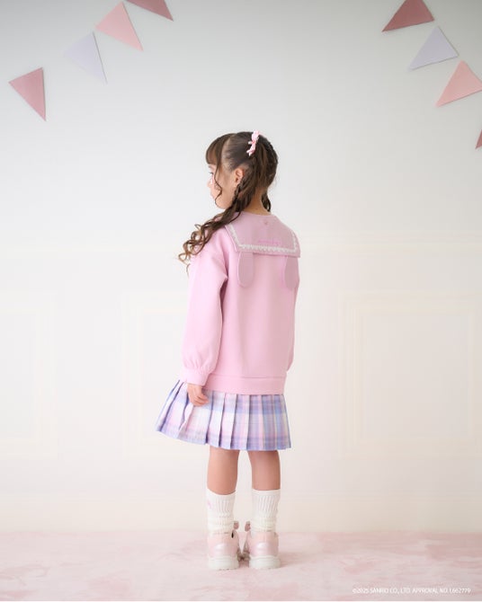 ピンクはマイメロディ、ブラックはクロミをそれぞれイメージしたチェック柄のプリーツをドッキングした制服風デザインのワンピース。