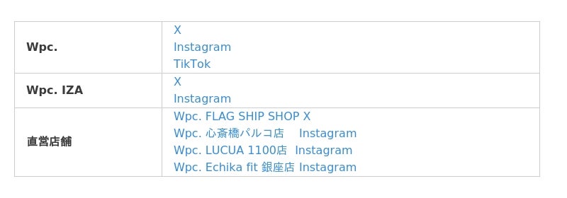展開ブランド :Wpc. / W by Wpc. / Wpc. IZA / SiNCA by Wpc. / ONDOO by Wpc.