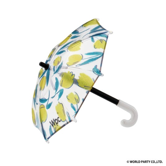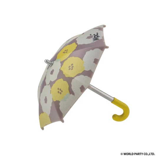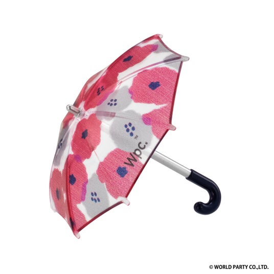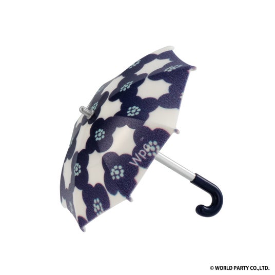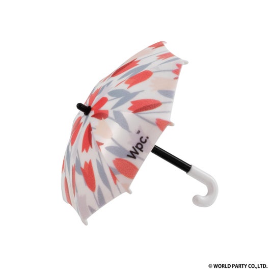 今回ガシャポン(R)から登場するのは、CAMELLIA NAVY(カメリアネイビー)/PIONI YELLOW(ピオニイエロー)/BLOOMING TULIP RED(ブルーミングチューリップレッド)/SWEET PEA OFF(スイートピーオフ)/PIONI RED(ピオニレッド)/TULIP YELLOW(チューリップイエロー)の6種類の傘。どれも雨の日を華やかに彩ってくれるWpc.を代表するテキスタイルデザインです。お気に入りのフィギュアやぬいぐるみ、推しのアクリルスタンドなどと一緒に飾って雨の日を楽しんでみて♪