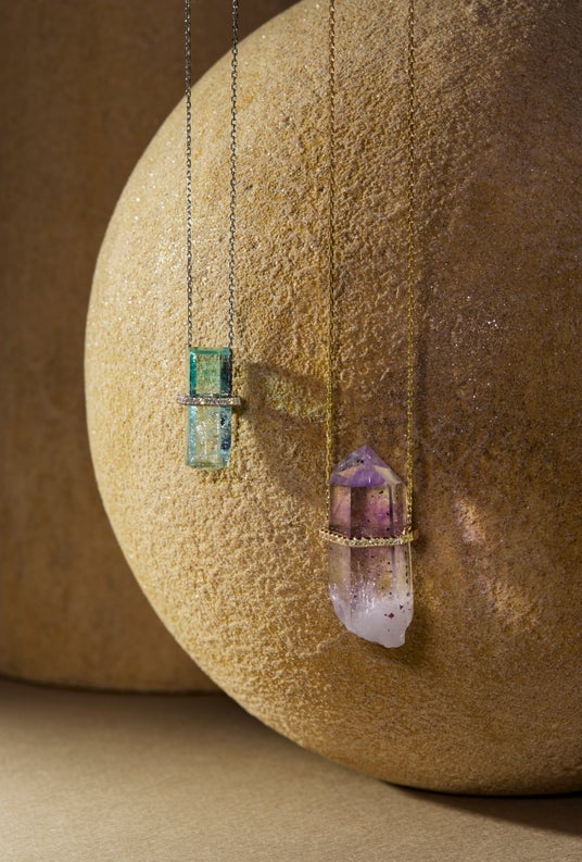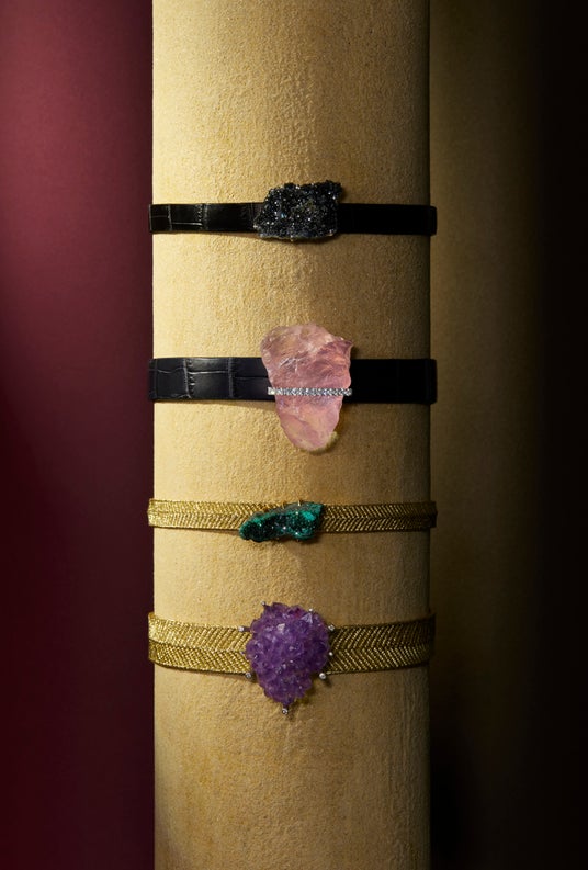 「AHKAH」の創業者であり、美術家である福王寺朱美氏が立ち上げた新ブランド「THAR(ザ)」。「THAR」は、「ジュエリーとアートのあいだ」に息づく新しい表現のかたちを探求し、鉱物を用いたジュエリーを展開します。自然が生み出した鉱物の美しさを損なうことなく、人の手によって新たな命が吹き込まれた「THAR」の作品は、唯一無二の輝きを放つジュエリーです。今回発表される作品は、チョーカーやネックレス、ピアスやブレスレットなど、日常の中に自然界からの贈り物を取り入れることができるラインナップとなっています。