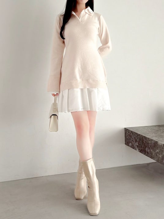 商品名:【POLO BCSコラボ】シャツレイヤードニットミニワンピース