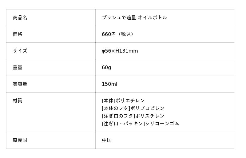 油を“必要な分だけ”出せる 「プッシュで適量 オイルボトル」 を12月に発売しました。