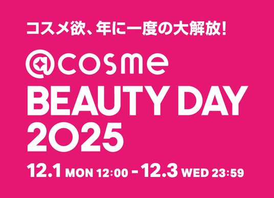 株式会社アイスタイル(代表取締役社長 遠藤 宗、以下 アイスタイル)は、2018年から開催している年に一度のEC・店舗の大型イベント「@cosme BEAUTY DAY」を、2025年12月1日(月)12:00~12月3日(水)23:59まで、@cosmeの公式通販「@cosme SHOPPING」、コスメセレクトショップ「@cosme STORE」及び「東京小町」「シドニー」各店※、@cosmeのフラッグシップショップ「@cosme TOKYO」「@cosme OSAKA」「@cosme NAGOYA」にて開催いたします。
