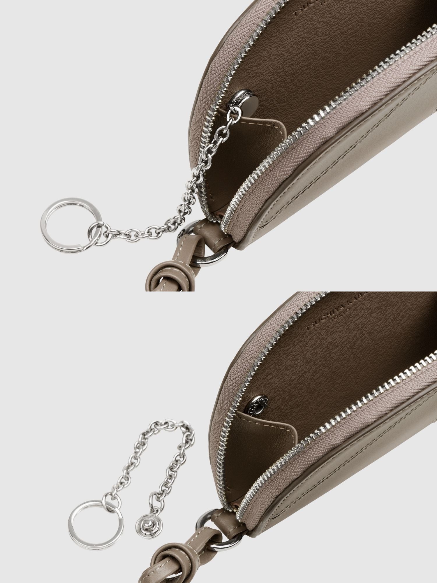 革の切り替えで「TSUCHIYA KABAN」の"T"をさりげなく表現した、上質な仕立てのキーリングカードケース。職人技と遊び心が光る、丸みを帯びた半円形のフォルムが目を引きます。ストラップ付きのため、お手持ちのバッグに取り付けたり、手首に通してぶら下げるなど、アクセサリー感覚でもお楽しみいただけます。