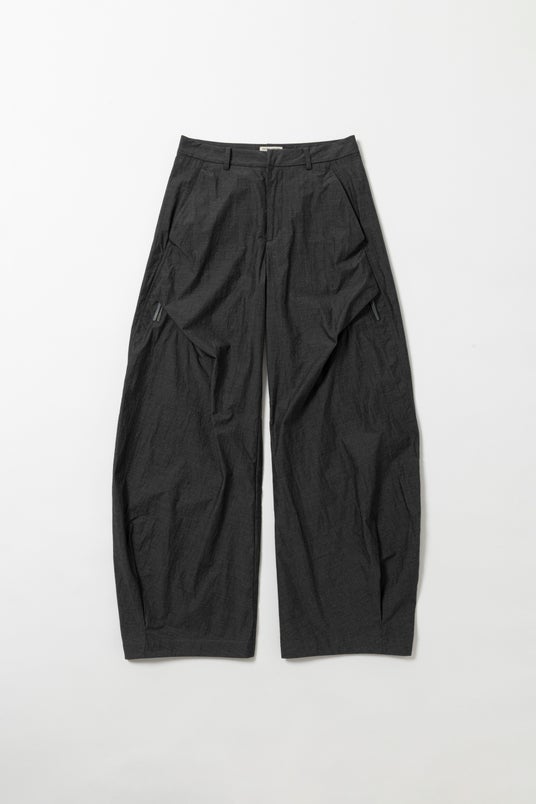 機能性にこだわりつつ、カーブシルエットとプリーツ加工で作られた立体的なパターンが秀逸なデザインパンツ。