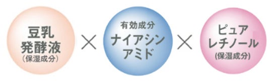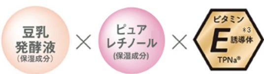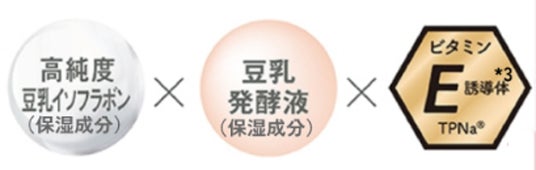 Wの豆乳由来の保湿成分*2に加え、ビタミンE誘導体*3を配合。