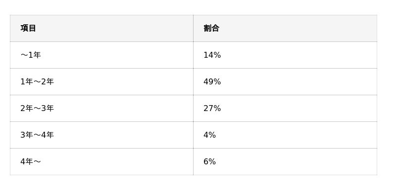 施術が完了するまでにかかった期間については、「1年~2年」(49%)と回答した人が約半数でした。