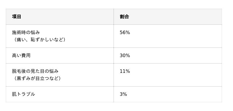 - デメリットは「施術時の悩み(痛い、恥ずかしいなど)」(56%)が最も多い