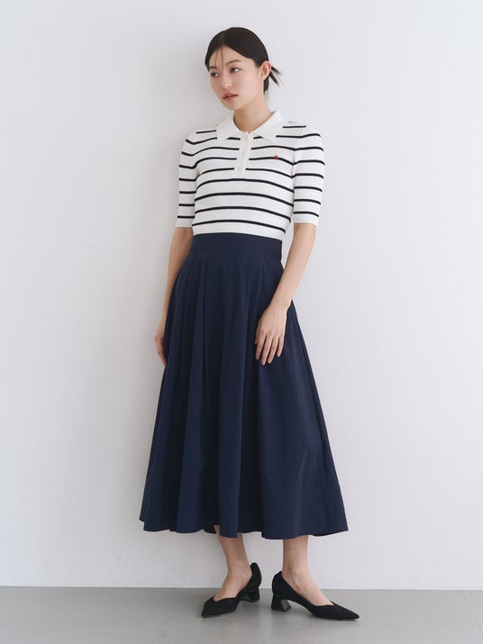 クラシックなポロシャツデザインにフレアスカートをドッキングした、カジュアルさときちんと感を兼ね備えたワンピース。ラインディテールやボーダー、ポロプレイヤー刺繍などカラーごとに異なるアクセントを取り入れたデザイン。