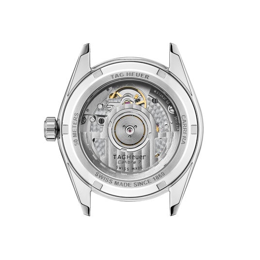 速度をグラフィカルに表現しているのが、ダイヤルを囲むグラデーショントラック。「タグ・ホイヤー カレラ」のレーシングヘリテージを彷彿とさせるこのディテールが、ソフトなカラーパレットにもかかわらず、この新作が大胆なスピリットを保ち続け、過去と現在をエフォートレスなスタイルでつないでいることを想起させてくれます。