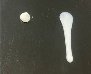 当社では、吸水ポリマーを配合する特殊な処方技術で、肌表面をサラサラにする日焼け止めクリームの処方化に成功しています。吸水ポリマーは、その名の通り吸水性が高い素材であるため、水分を多く含む処方では、安定化が難しいと考えられています。当社では、肌への塗り伸ばしがさらに快適な低粘度の乳液状の日焼け止めの処方化に取り組みました。