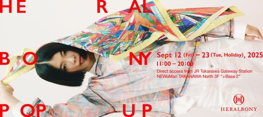 株式会社ヘラルボニーが展開するブランド「HERALBONY(ヘラルボニー)」は、9月12日(金)に本格開業となる「ニュウマン高輪」にポップアップストアを出店します。テーマは「まとう美術館」。八重樫道代の作品「おりがみ」を起用したシルクスカーフの先行販売をはじめ、秋の装いを彩る新作アイテムをラインナップします。さらに、ルフトバウム 28F 「月白の庵」やプロモーションスペース"+Base 2"の大型透過サイネージでは、ヘラルボニー契約作家の作品による空間のコラボレーションを実施。日常にアートの余白を添える、豊かな出会いをぜひお楽しみください。