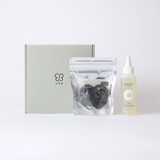 公式オンラインストアukakauと店舗では、ケンザンとクロモジの力で頭皮をすっきりクレンジングuka IZU Scalp Cleansing Deep & Lightのセットをご用意。