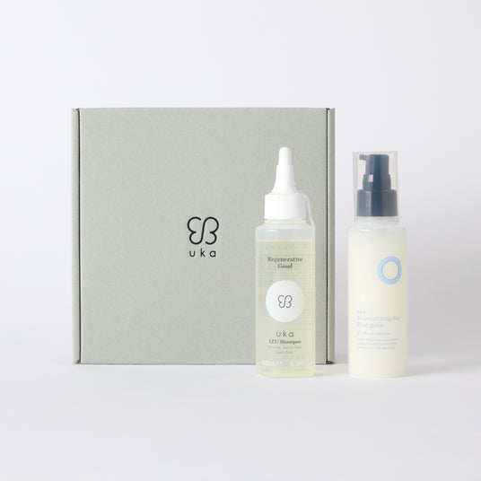 もう一つは、フケ・かゆみに弱い敏感な頭皮の方へおすすめシャンプーuka IZU Shampoo for scalp,hair&body 'Anti-Itch'と全身保湿ができるオールインワンジェルuka Moisturizing Gel Rice juiceのセットです。