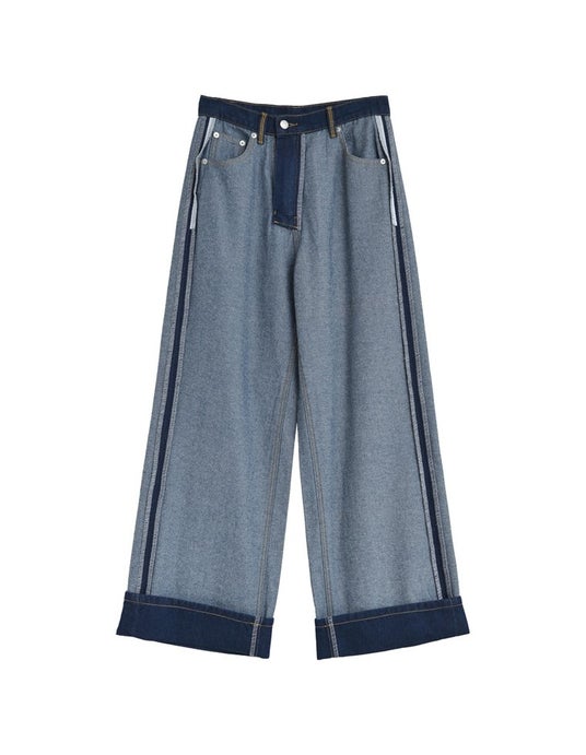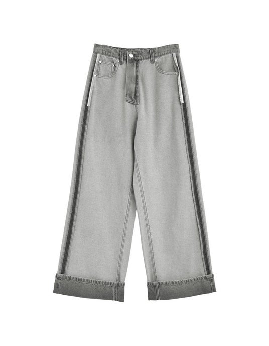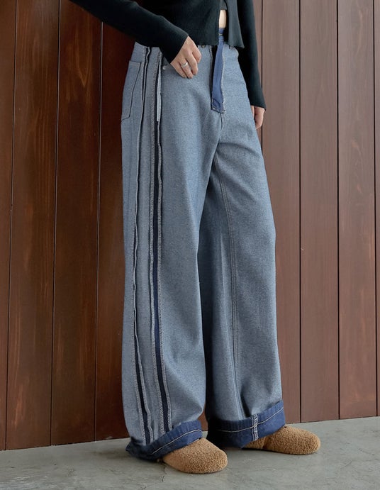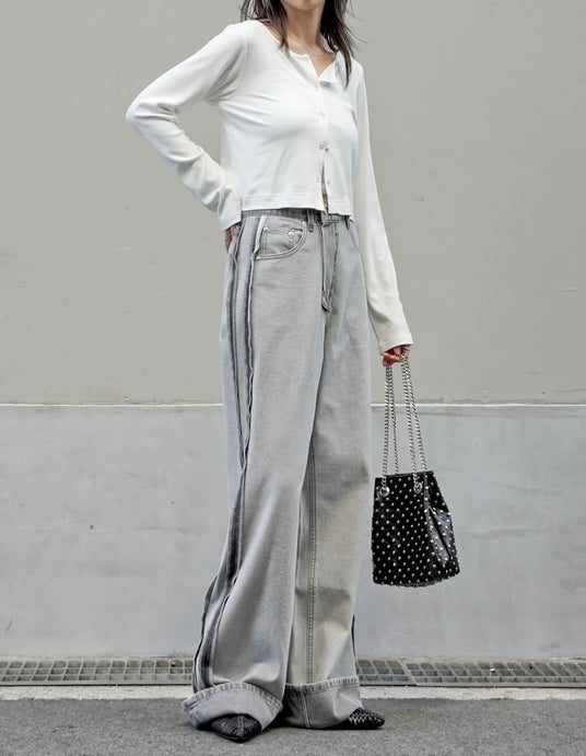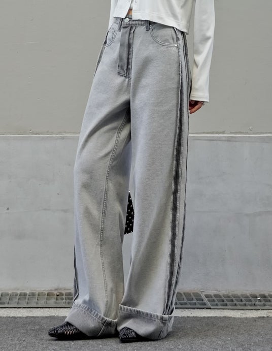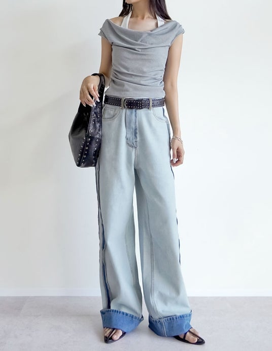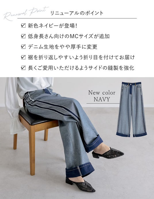 商品名:[リニューアル][新色追加][低身長/高身長サイズ有]ワイドストレートリバースデニムパンツ
