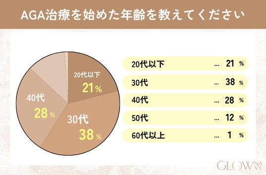 AGAオンライン診療を始めた年齢について、「30代」という回答が38%で最も多い結果でした。