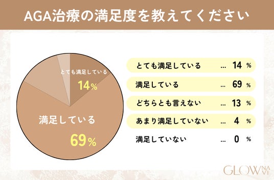 AGAオンライン診療の満足度については、「とても満足している」(14%)と「満足している」(69%)を合わせて83%という結果でした。
