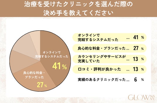 - クリニックを選んだ決め手は「オンラインで完結するシステムだった」ことが41%で最多