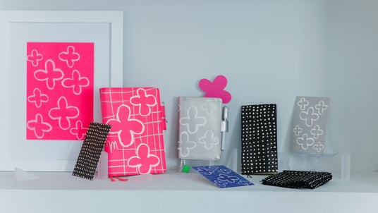 松林誠さんがのびのびと描いた花とドット高知県を拠点に活動する版画家・アーティスト、松林誠さんのドローイング作品で手帳カバーとweeks、文具をつくりました。クレヨンや絵の具を使い、のびのびとした筆致で描かれた花やドットは、手描き特有の線のゆらぎがやさしい印象です。