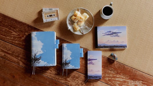坂口恭平さんがパステル画で描いた「空」白い空が立ち上がっていく、澄んだ秋の空。この清々しい風景は、写真のように見えますが、実はパステル画です。この絵を描いたのは、作家で画家、音楽家で写真家、建築家でもある坂口恭平さん。坂口さんのパステル画をつかって、手帳カバーとweeks、ノートをつくりました。