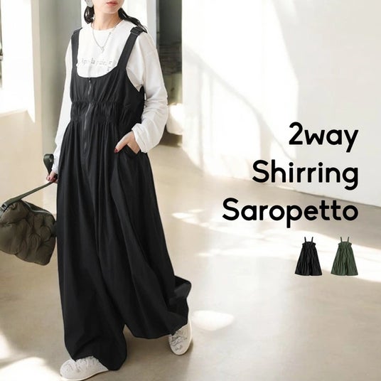 【シャーリング サロペットパンツ】 着た瞬間、絶対可愛い間違いなしの一着。モードにカジュアルに幅広く使える優秀さ。