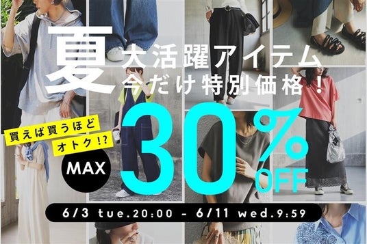 【今だけの特別価格!夏に大活躍アイテム最大30%OFF♪】