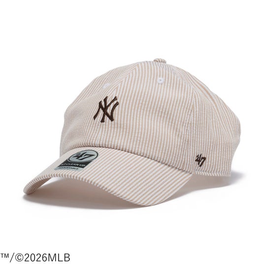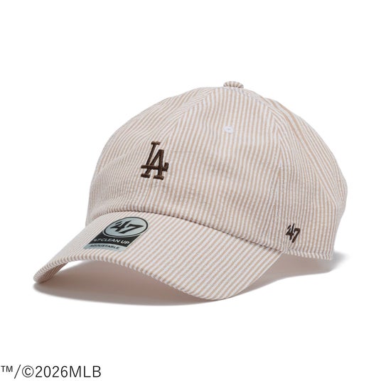 デザインは、ニューヨーク・ヤンキース、ロサンゼルス・ドジャースの球団ロゴをフロントに配したモデルを展開。爽やかなストライプ柄のシアサッカー素材とクラシックなMLBロゴの組み合わせにより、スポーツのルーツを感じさせながらも、ファッションアイテムとして取り入れやすいバランスに仕上げています。春夏の軽やかな装いに取り入れやすく、プレッピーテイストのアクセントとしても楽しめるデザインです。