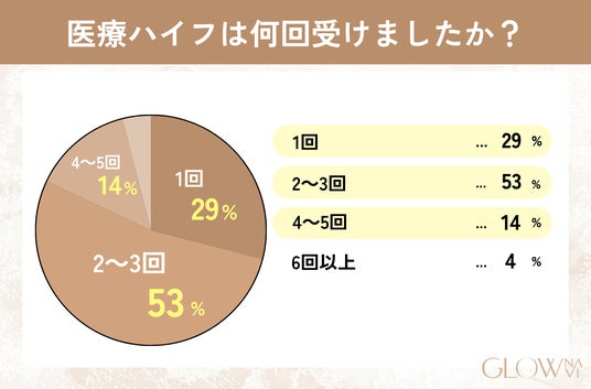 医療ハイフを受けた回数について、過半数の人が「2~3回」と回答しています。