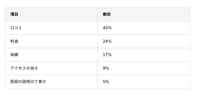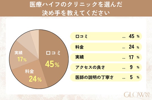 - クリニックを選んだ決め手は「口コミ」という回答が45%で最多