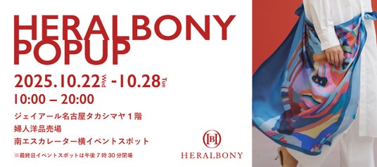 株式会社ヘラルボニーが展開するブランド「HERALBONY(ヘラルボニー)」は、2025年10月22日(水)から28日(火)までの7日間、ジェイアール名古屋タカシマヤ1階南エスカレーター横イベントスポット及び1階婦人洋品売場内にてポップアップストアを開催いたします。