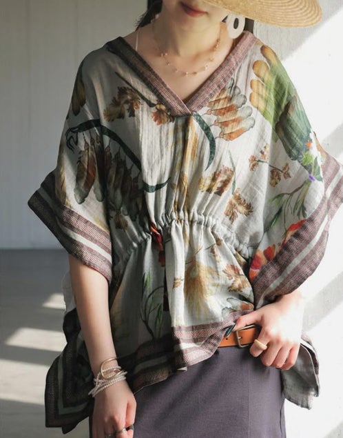 Ethnic pattern skipper neck topsitem no : IYA-00088