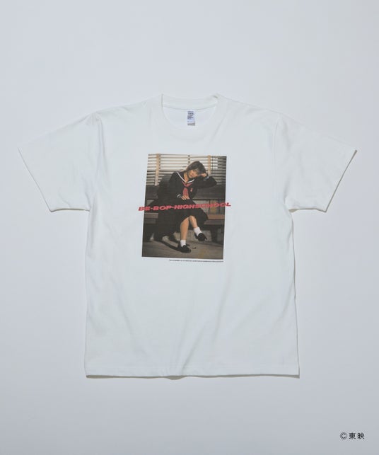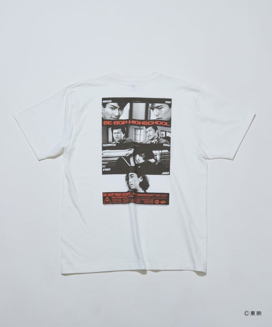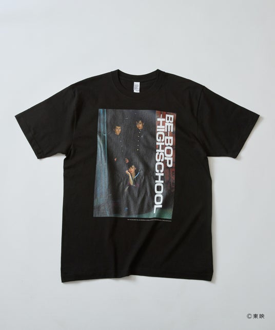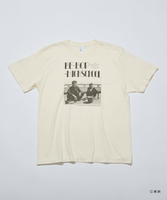 『ビー・バップ・ハイスクール』は1985年から6度にわたって実写映画化されたヤンキー映画の金字塔で、当時のティーンを中心に空前の大ヒット。劇中のセリフや改造学生服を真似し、学校ごとに抗争を繰り広げるヤンキー学生が日本全国に溢れ、社会現象となっていきました。世間の良識ある大人からは、うとましく思われることも多かった『ビー・バップ・ハイスクール』ですが、今あらめて見ると、「強い者に立ち向かう」「弱いものを守る」「仲間を見捨てない」など、当時の男性が理想とした教育的側面を感じて、熱かったあの時代に想いを馳せてしまうのです。劇場版第1作公開から40周年のメモリアルイヤーとなる今年、ぜひ、このTシャツを着て、街を闊歩してもらえると嬉しく思います。BE-BOP FOREVER!
