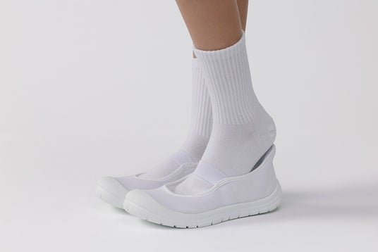 靴ベラ状のかかと構造で、手を使わずに立ったまま履けます。