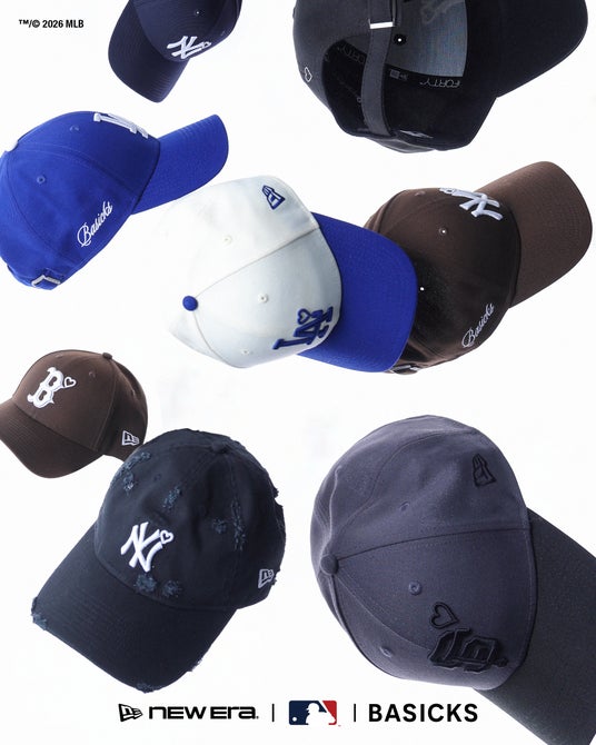 スポーツ・ライフスタイルのグローバルブランドであるニューエラは、デザイナー・森川マサノリが手がけるブランド<BASICKS (ベイシックス)>とのコラボレーションによる、MLB(TM) (メジャーリーグ・ベースボール)の4球団にフィーチャーしたトリプルコラボコレクションを、ニューエラ公式オンラインストアとBASICS直営店、及び全国のBASICKS取扱店にて5月2日(土)に発売いたします。