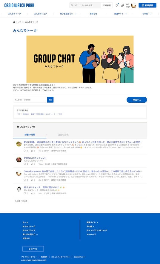 カシオの腕時計を愛用するファン同士が気軽に交流できる場を提供